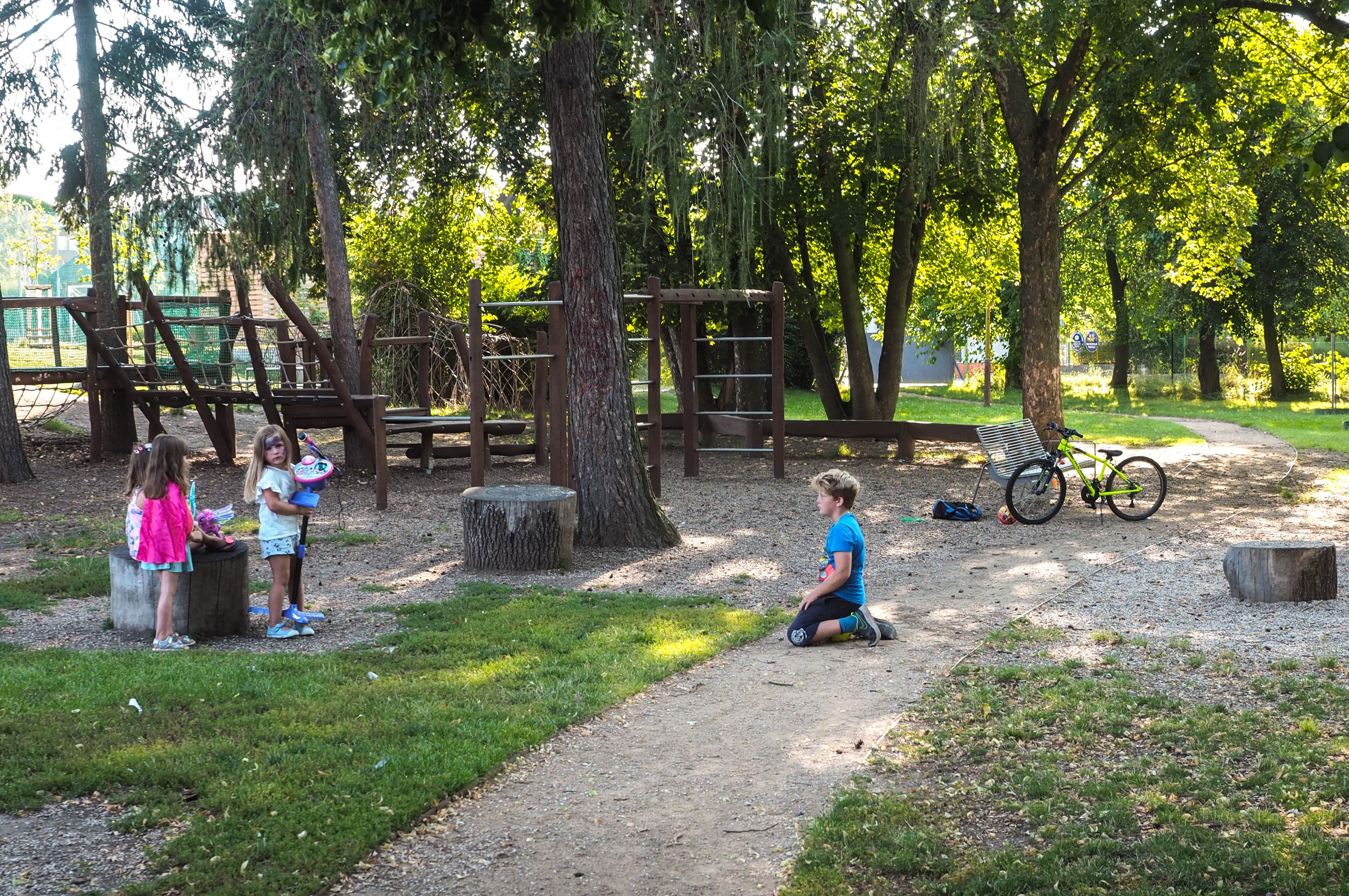 Uvnitř zahrady je umístěn venkovní senior fitness park s 5 cvičebními prvky. Park je doplněn herními prvky pro děti, venkovním hledištěm pro kulturní představení, venkovním ohništěm, velkým stolem, pergolou, besídkou a povrch zahrady je zatravněn a osázen novými keři a stromy. V těsném sousedství zahrady se nachází nové sportovní hřiště s umělým povrchem.
